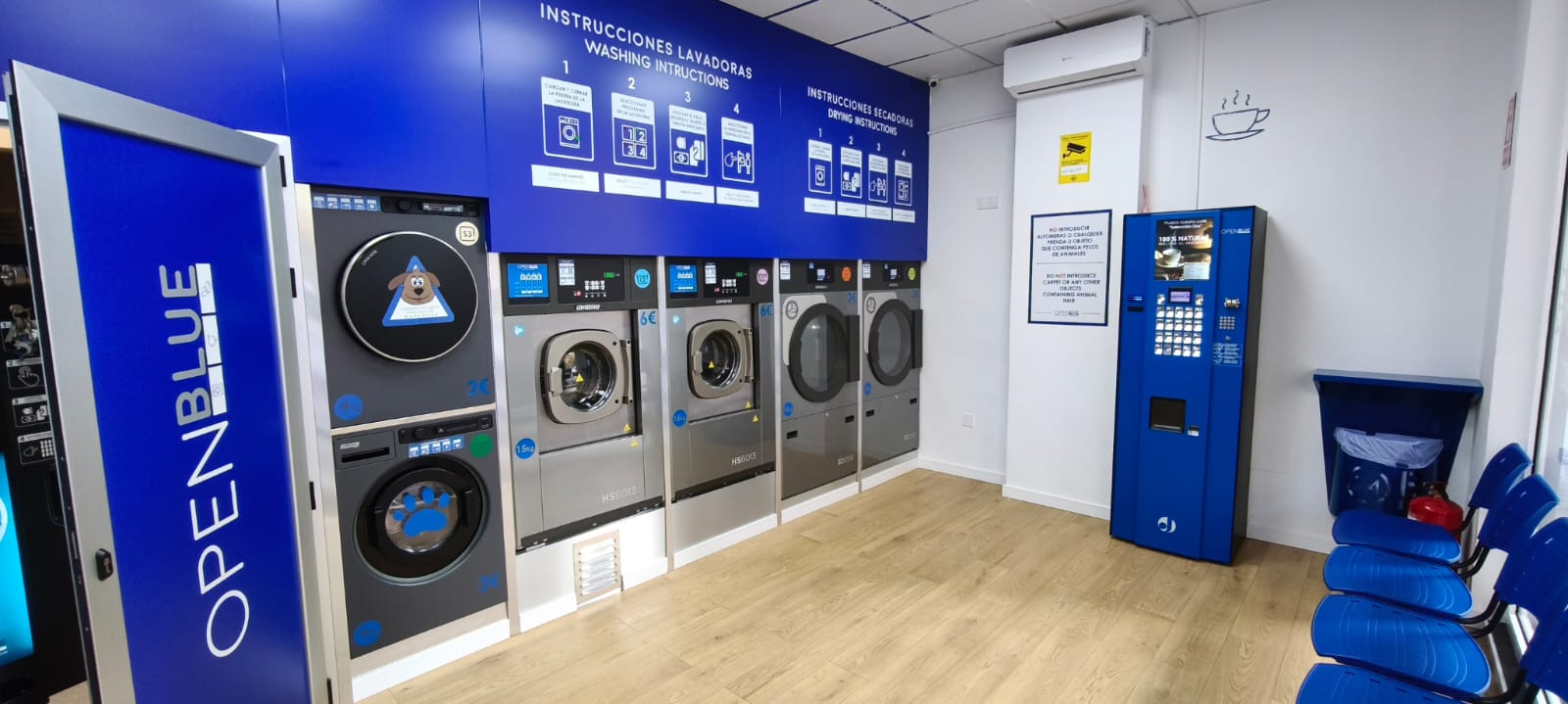 Somos Openblue Orihuela, una lavandería autoservicio moderna y elegante.