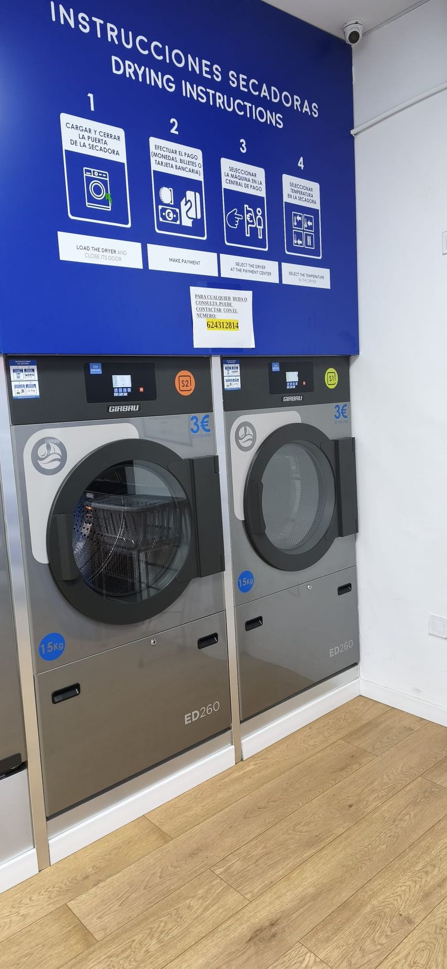 Disponemos de lavadoras y secadoras de gran capacidad, para que puedas lavar y secar grandes cantidades de ropa, o prendas de gran tamaño, como mantas, edredones, cortinas, etc. en muy poco tiempo.